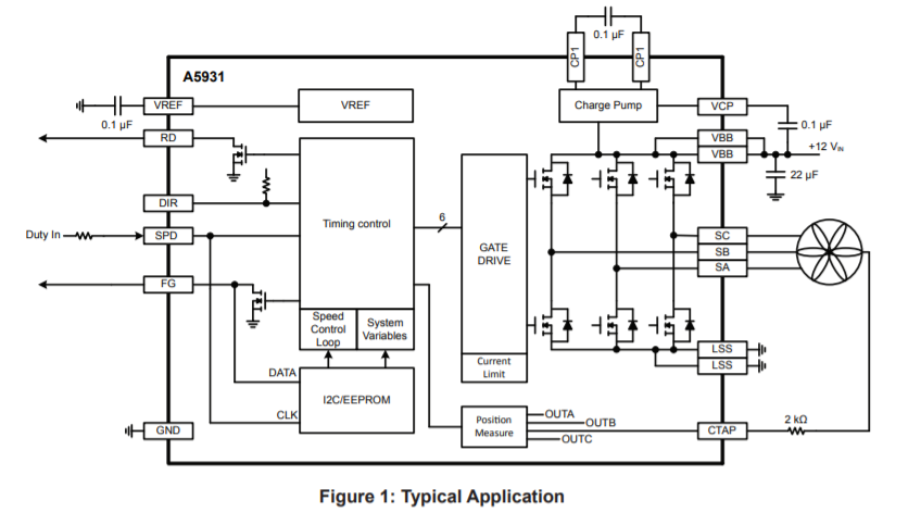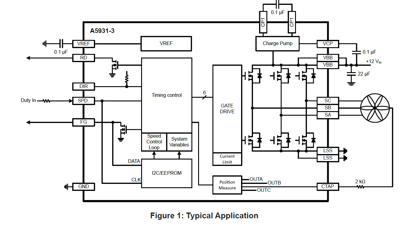 - Motor position using Allegro's sensorless algorithm - Eliminates external Hall sensors
