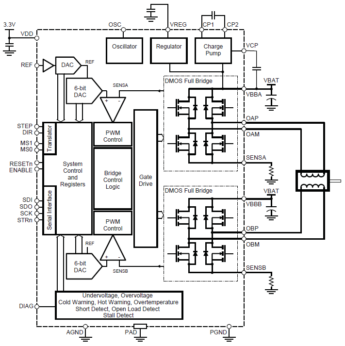 - Internal OVLO, UVLO, and Thermal Shutdown circuitry