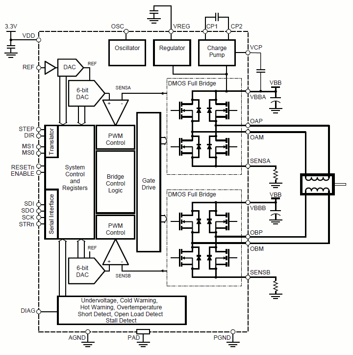 Microstepping Programmable Stepper Motor Driver with Stall Detect and Short Circuit Protection