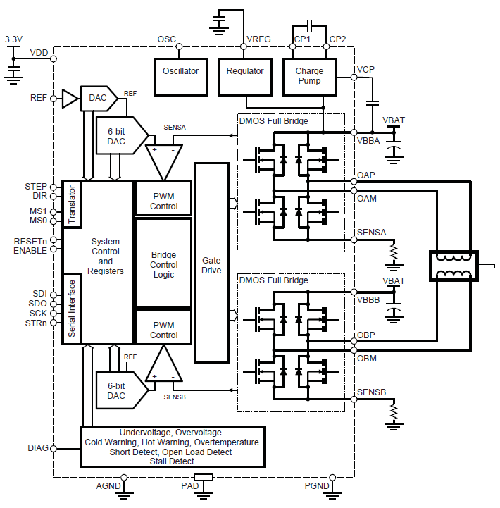 - Internal OVLO, UVLO, and Thermal Shutdown circuitry