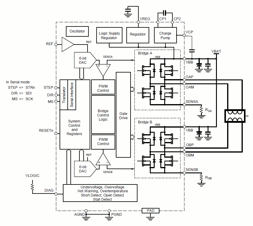- Short circuit and open load diagnostics