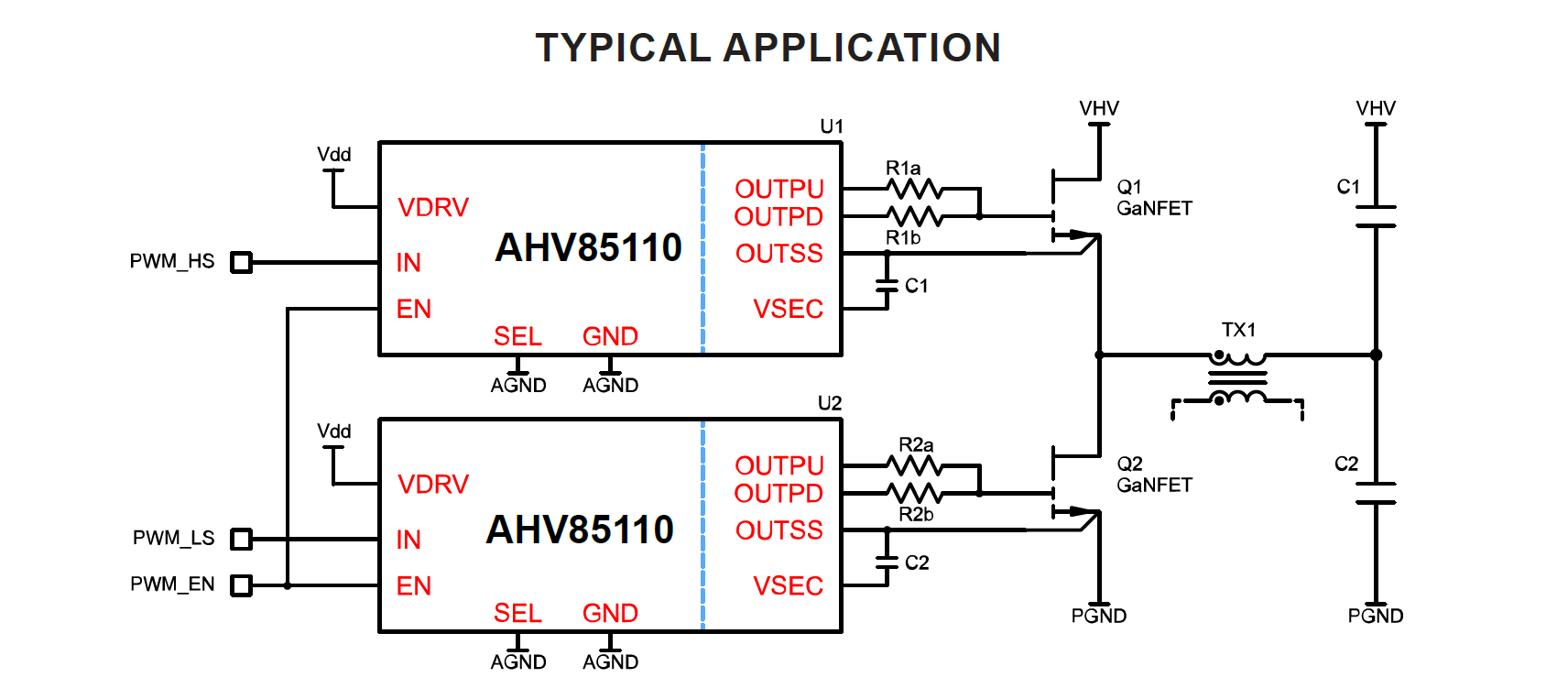 The AHV85110 isolated gate driver is optimized for driving GaNFETs in multiple applications and topologies. An isolated output bias supply is integrated into the driver device, eliminating the need for any external gate drive auxiliary bias supply or high-side bootstrap.