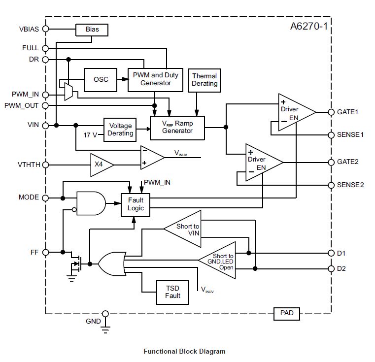 - Drain short-to-VIN, open LED, VIN undervoltage, and thermal protection