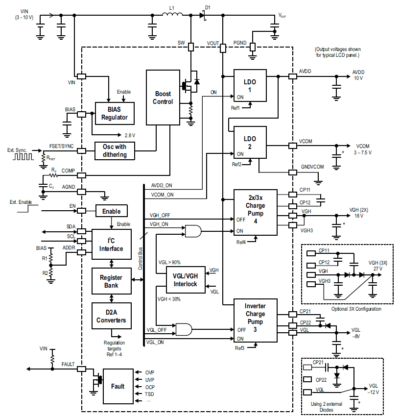 - Boost switching frequency: 350 kHz to 2.25 MHz