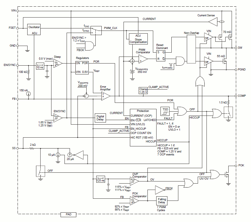 - Adjustable output voltage as low as 0.8 V with ±1% accuracy from –40°C to 125°C
