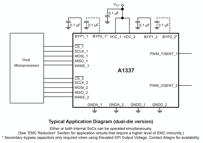 - SPI and SENT interfaces allows use of multiple independent sensors for applications requiring redundancy*