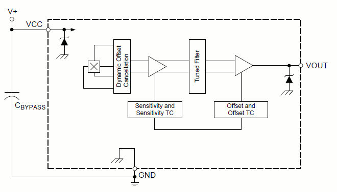 - Temperature-stable quiescent voltage output and sensitivity