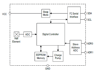 - EEPROM stores factory programmed settings and up to 16 bytes of user information (programmable through the I²C interface)