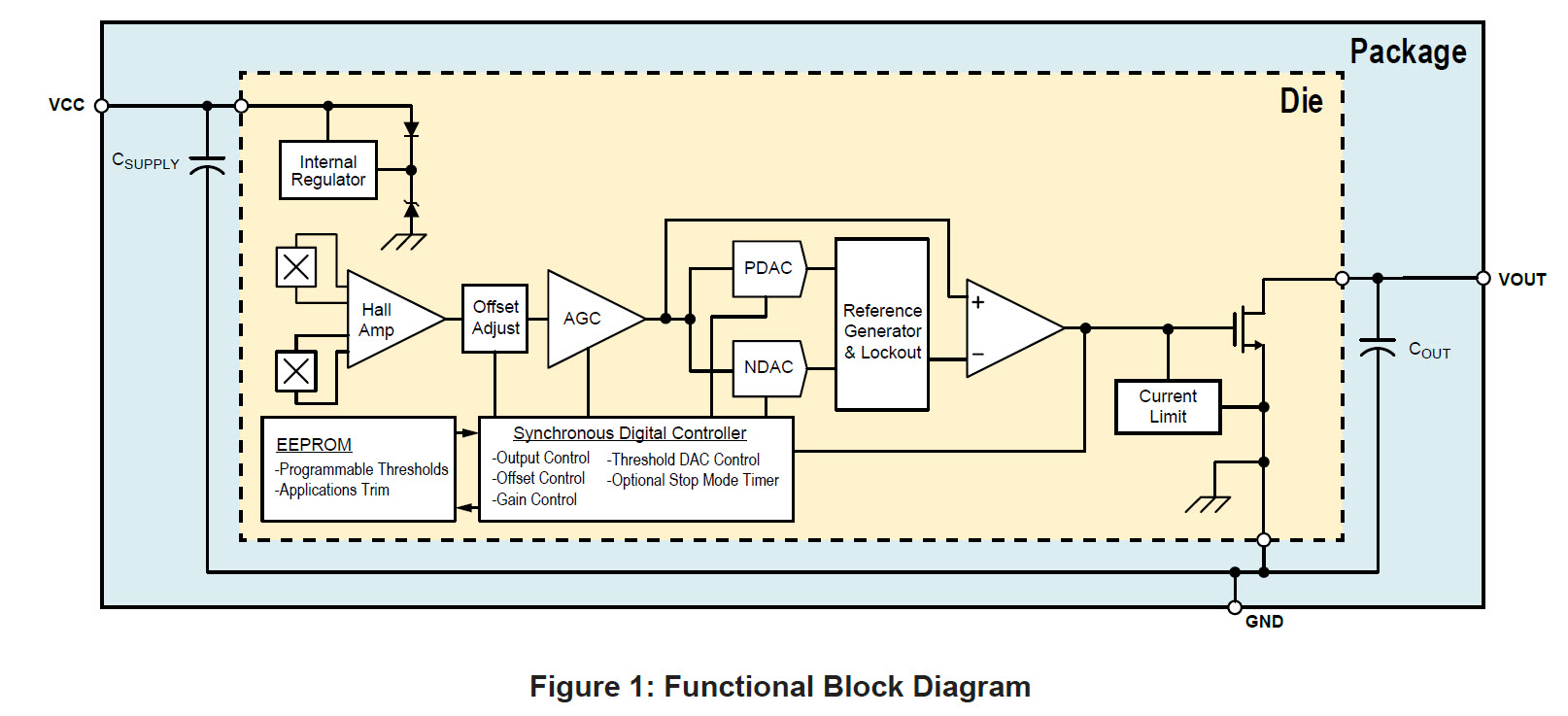 - Large operating air gaps achieved through use of gain adjust and offset adjust circuitry