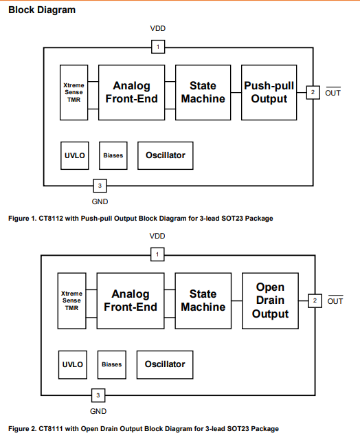 The CT81xx series of magnetic sensors offer stable magnetic operation over the operating temperature range. With very high sensitivity, the CT81xx products enable larger air gaps or smaller size/lower cost magnets to be used in systems while also drawing supply current as low as 110 nA. As such, these magnetic sensors are ideal for battery operated products where minimal current consumption is required.
