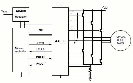 A4960: 自動車用センサーレス BLDC コントローラ