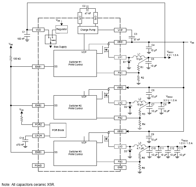 - 各コンバータの独立制御により、パワー シーケンスを単純化