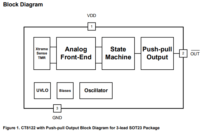 The CT81xx series of magnetic sensors offer stable magnetic operation over the operating temperature range. With very high sensitivity, the CT81xx products enable larger air gaps or smaller size/lower cost magnets to be used in systems while also drawing supply current as low as 110 nA. As such, these magnetic sensors are ideal for battery operated products where minimal current consumption is required.