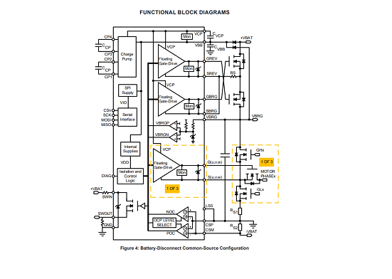 - Fully integrated diagnostics for safe motor phase and battery disconnect
