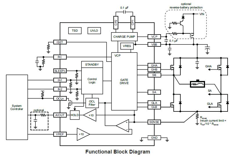 • Overcurrent flag output to detect stall conditions