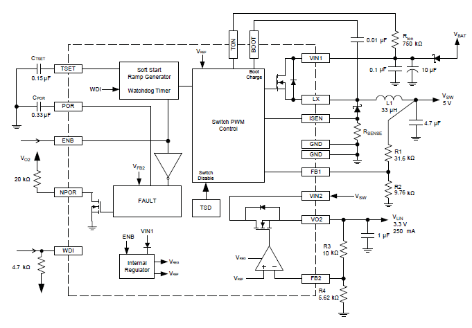 A4402: 带有集成线性稳压器的恒定工作时间降压转换器