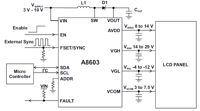 A8603:用于汽车 LCD 显示器的多输出稳压器
