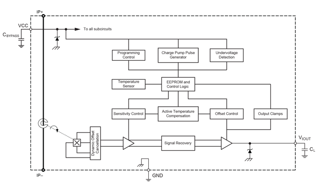 - 集成屏蔽可大幅减少因高 dV/dt 信号导致电流导体至晶片的电容耦合,并可防止高侧、高压应用中的偏置漂移。